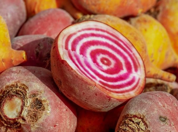 La betterave De Chioggia offre une texture ferme ainsi qu’une saveur douce et sucrée, très appréciée en cuisine. Production Villars les Dombes